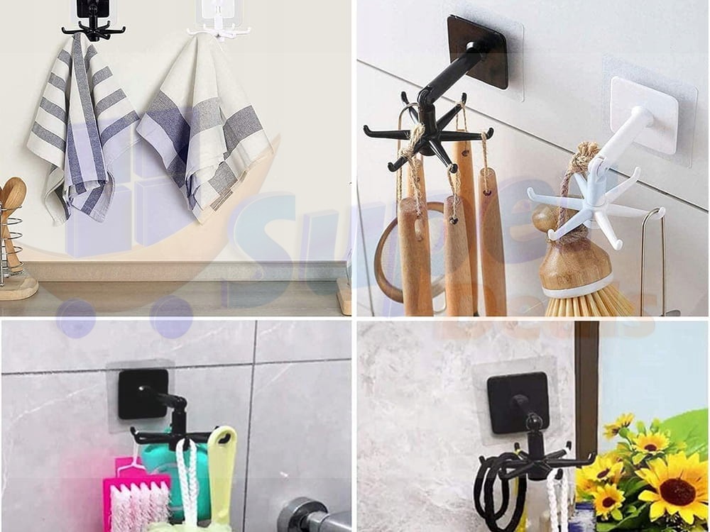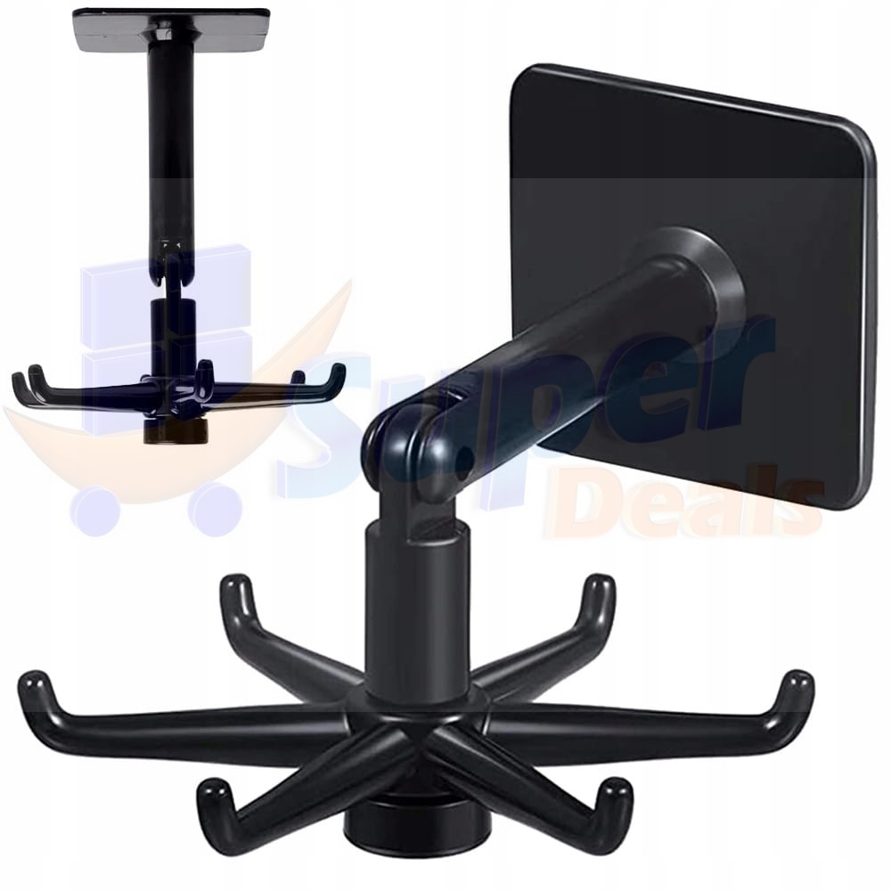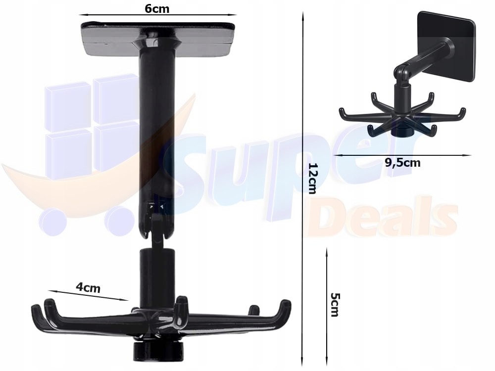 Wieszak zamontować można za pomocą przylepca. Wyposażony jest w 6 ramion.
